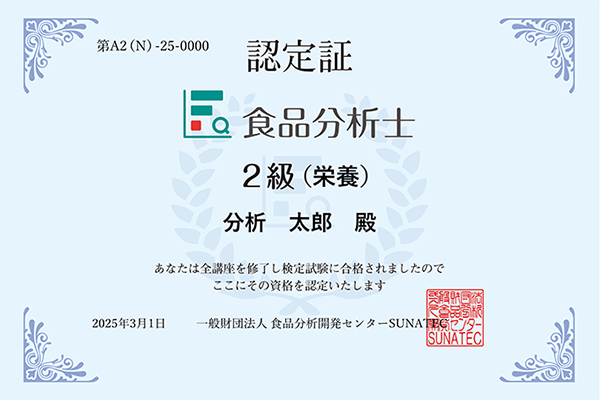 2級(栄養)では、栄養成分の分析手法を学び、適切な選択と活用を理解できます。食品表示のための分析に携わる方におすすめです。