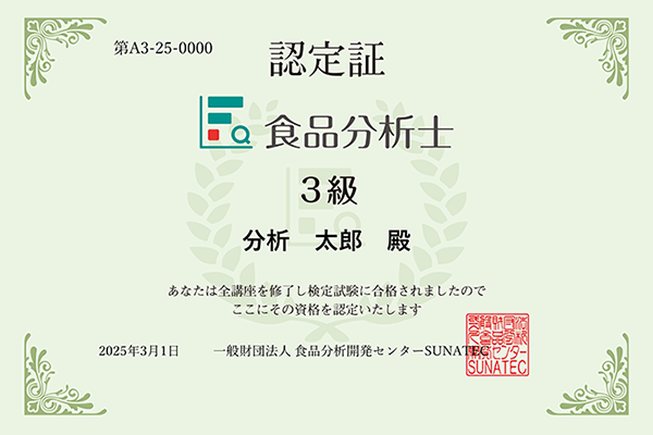 食品分析の方法と原理を満遍なく学べて、検定として学んだ成果を残せるのがとてもいいと思います。